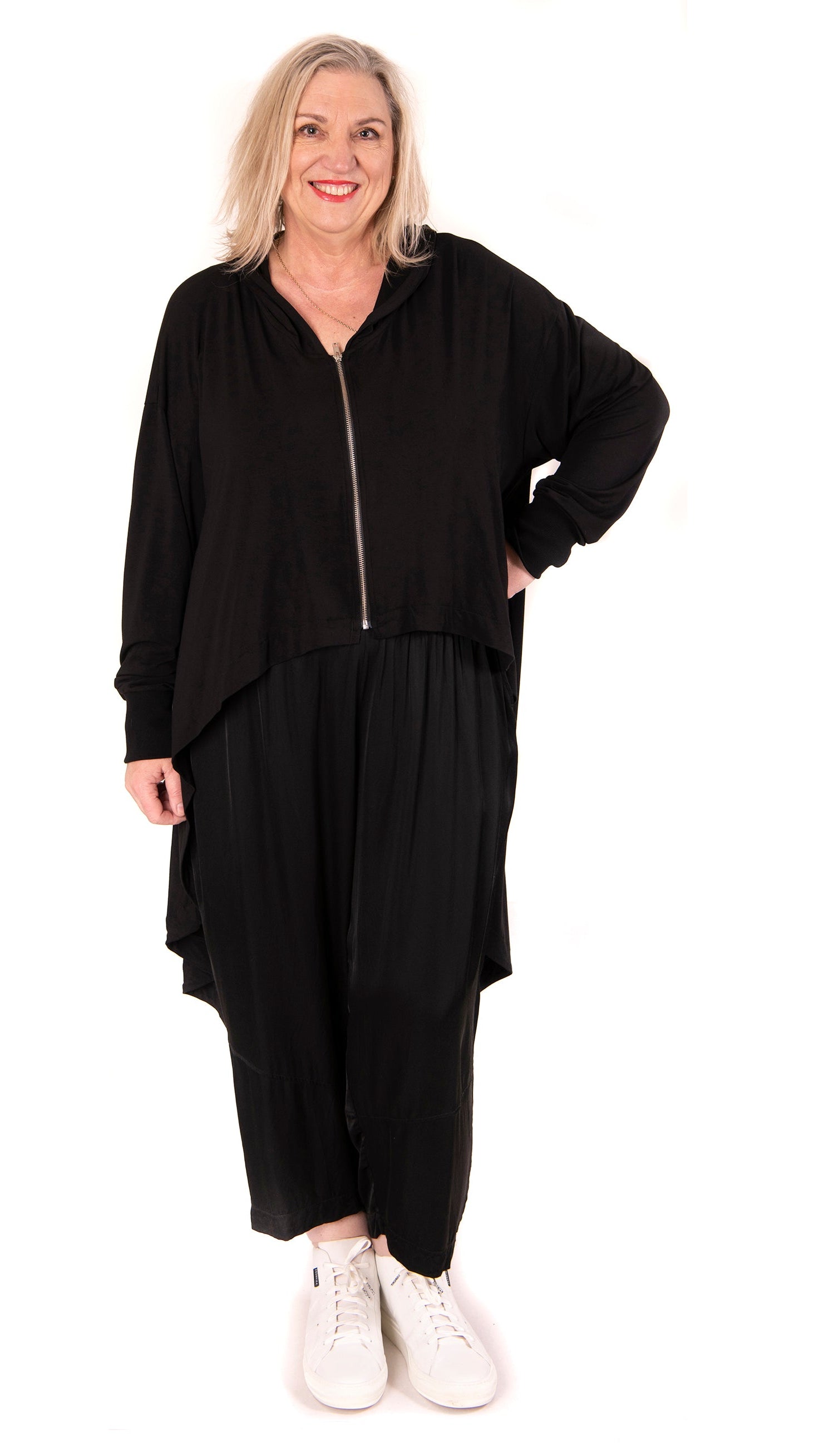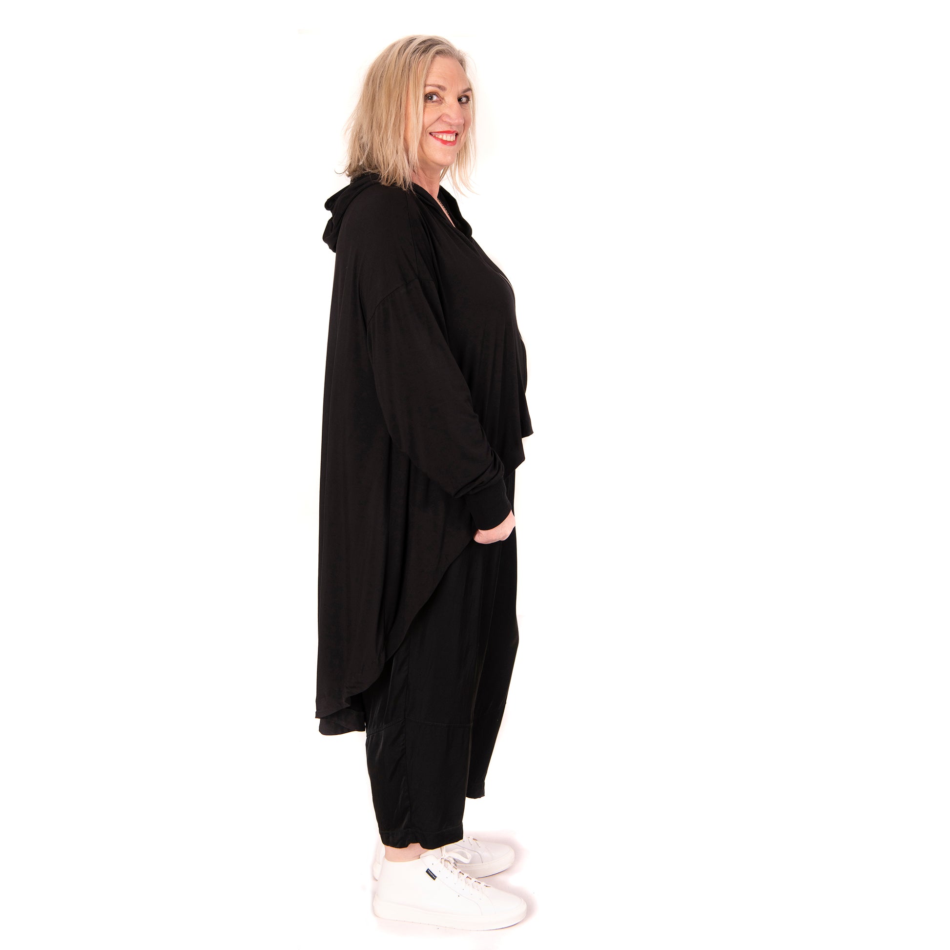Anonymous This is a perfect transseasonal piece. Great for the big girls, gives a streamlined silhouette to your busy bright tops.