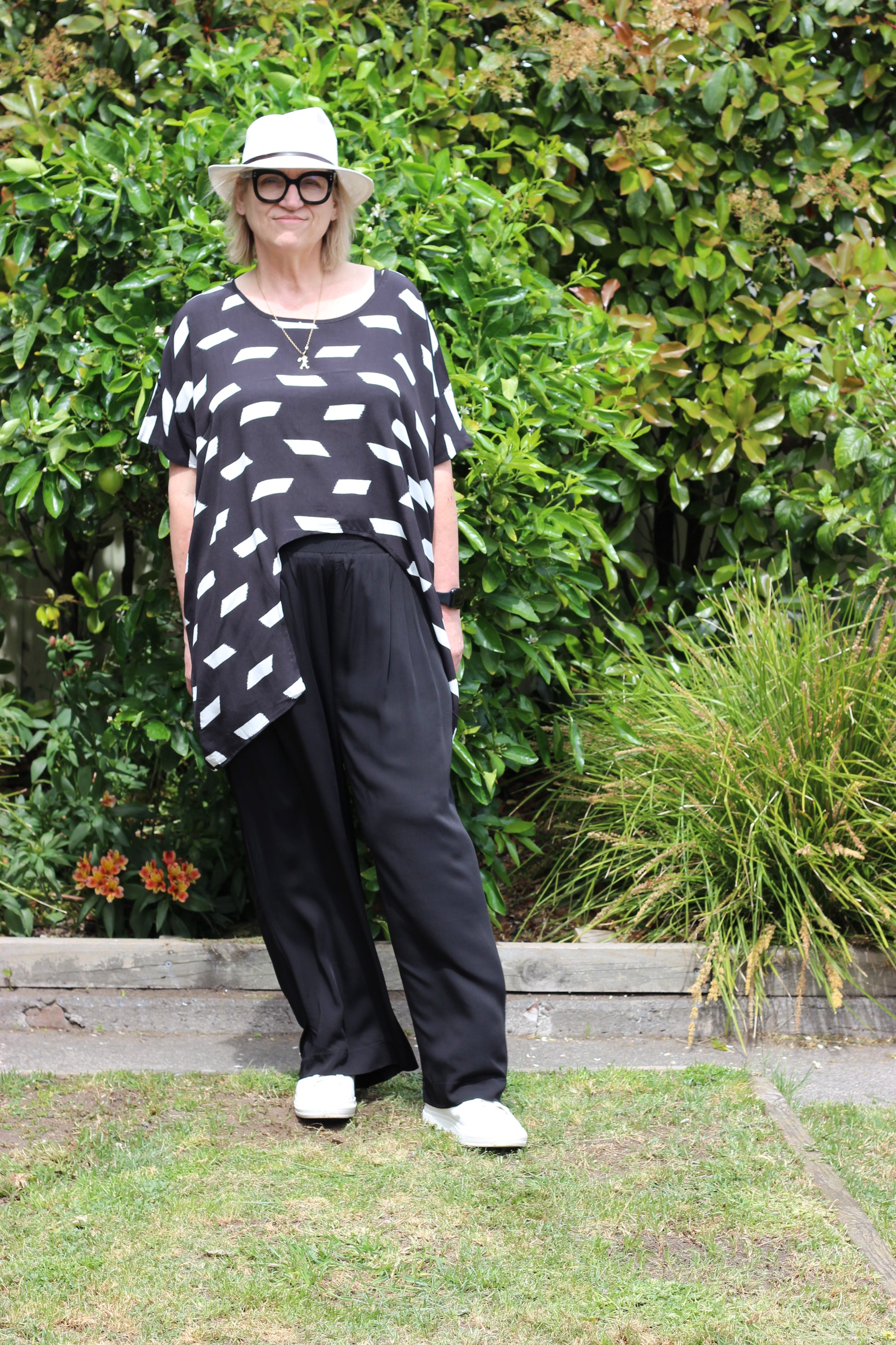 the cut out curve top plays with shapes and proportions, slimming the waist yet draping over the hips for a relaxed feel.