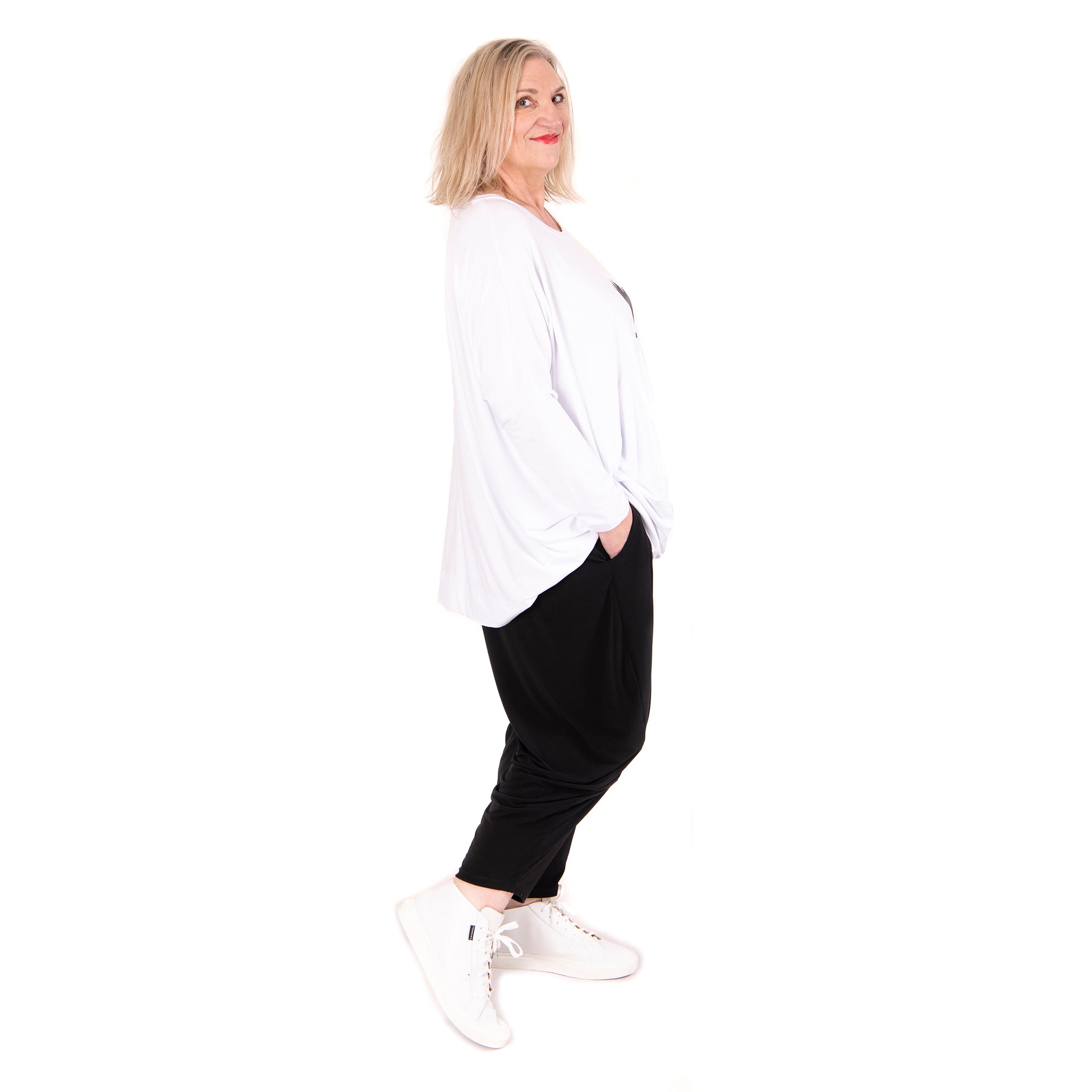 the square top is literally that, a square. this means more fabric around the body, giving more coverage and creating more drape.
