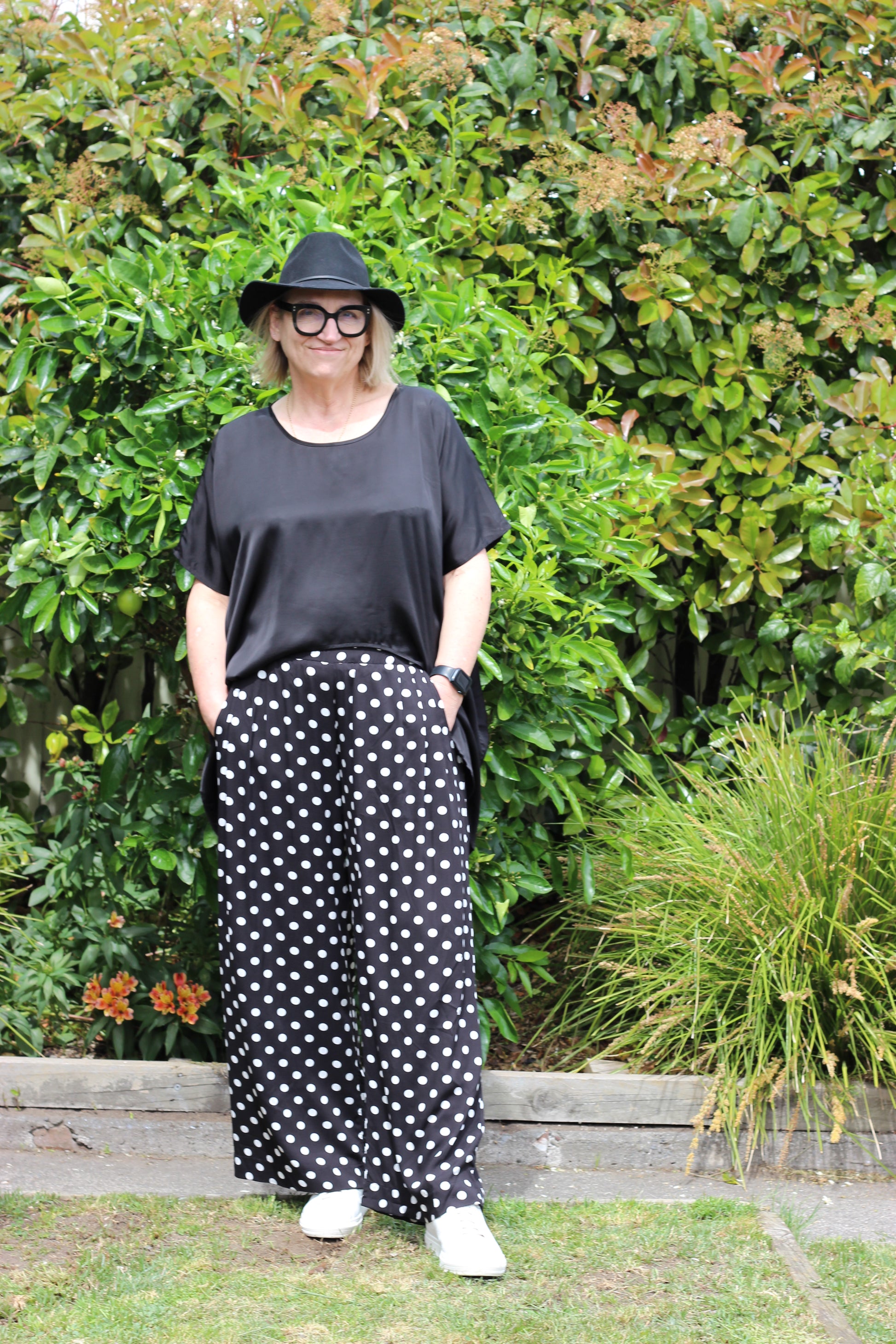 Sporting an elastic waistband with cleverly placed pleats and of course pockets.